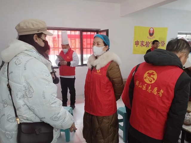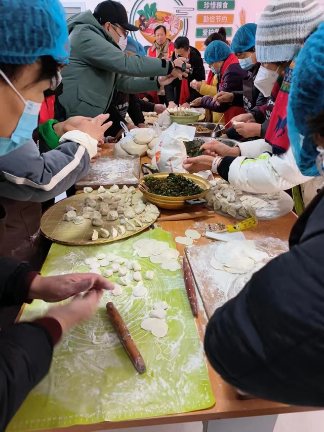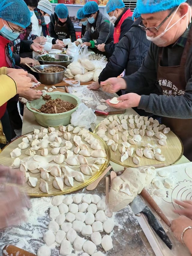邯山区民政局副局长杜书芳、滏东街道人大工委主任高彦章、滏一社区书记石改芬、邯郸市绿色环保联合会主席田尚宏、邯郸市助学助困慈善协会党支部书记肖军生、邯郸市厨师协会会长张强、魏县申家饸饹有限公司董事长申文堂、邯郸市崔氏肛肠中医院院长熊文军等与社区居民共度冬至。